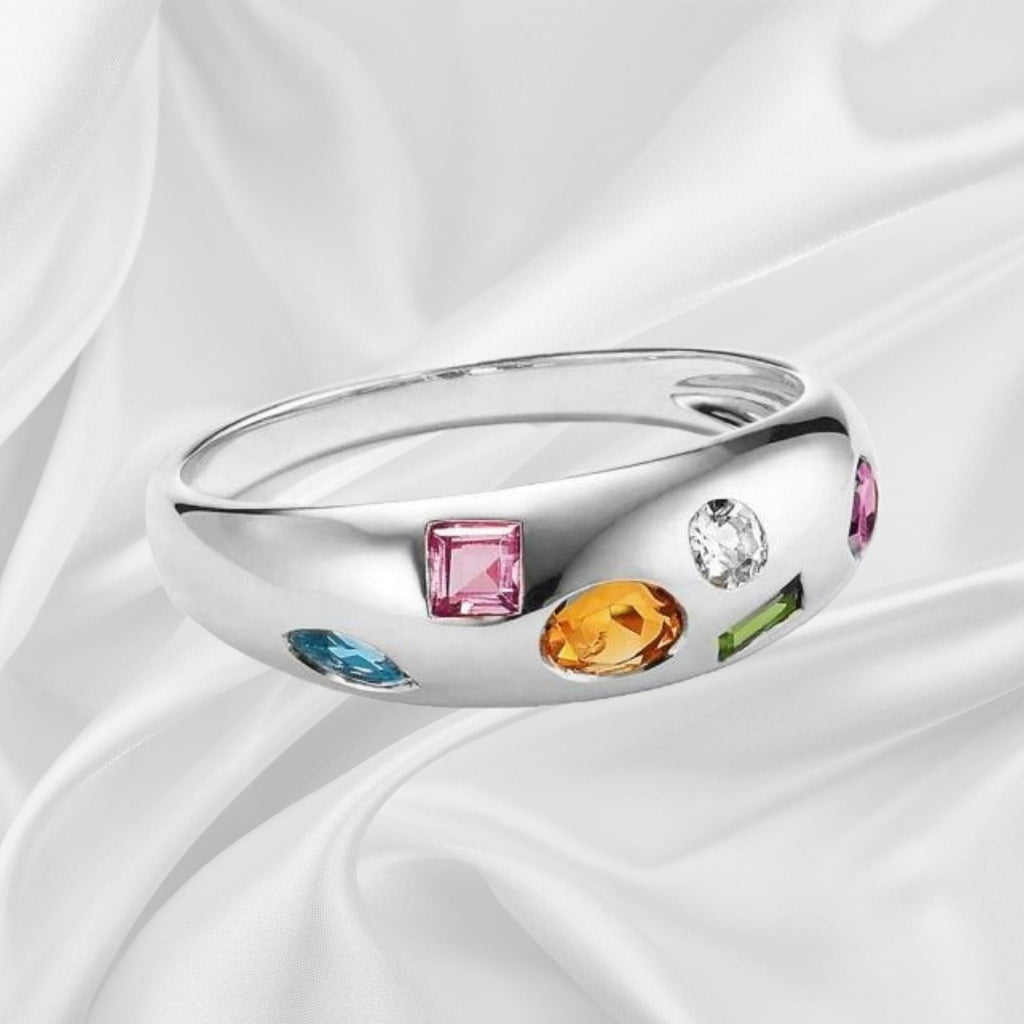 Sterling silver / 18k gold or white gold plated dome ring with a mosaic on colourful cubic zirconia