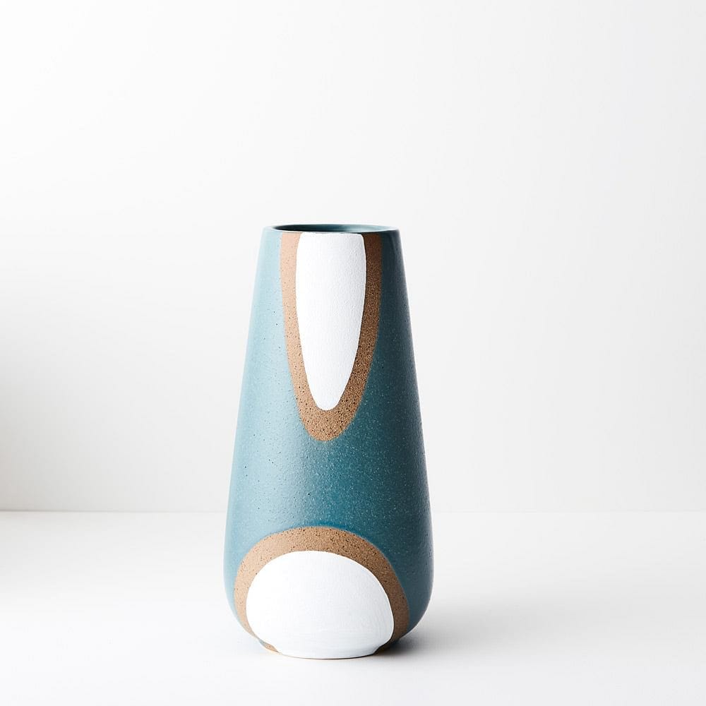 This ceramic Vase Babua in Aqua is handmade featuring hand painted patterns, due to the nature of handmade items there may be slight variations in the size, surface texture, glaze consistency, colour or tone of the vase.